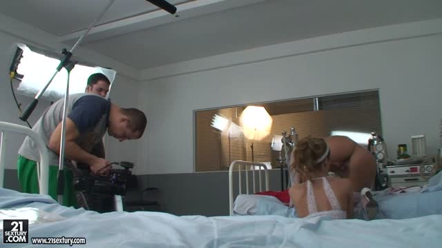Thick Blonde Sucks On Agent's Big Tits and Cameraman's Big Dick