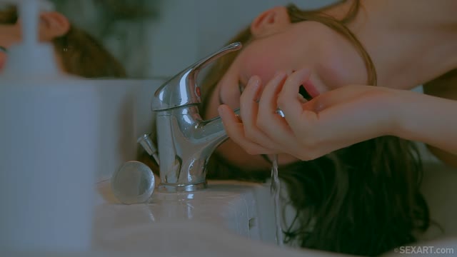 American housewife Gina getting wet in the bathtub