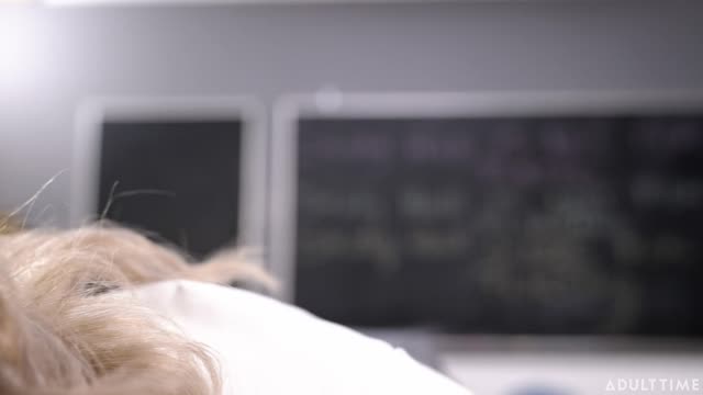 Teacher Lauren Phillips is in class alone with Ricky Spanish, who sits at his desk. They lock eyes, exchanging flirtatious glances. Lauren bites her lip suggestively. At that moment, Lauren's husband, Rob Piper, a coach at the school, pops into small-talk and check on her about heading home together. Lauren tells Rob that she is finishing detention with Ricky, politely shooing her husband away. When the coast is clear, Lauren hurries to the desk and kisses Ricky passionately. It becomes clear that they've been having an affair. She sinks to her knees in front of Ricky, pulling down his pants. Putting his hard cockin her mouth,she gives him a wild blowjob. Soon, Ricky bends Lauren over a desk. Hiking up her skirt, he fucks her doggystyle. But they're interrupted midway through their fuck session when Rob unexpectedly pops his head back into the classroom. Lauren hides behind the door and continues to get fucked doggystyle as she makes another excuse to Rob, successfully shooing him away again. With Rob gone, Lauren sits in her chair behind her desk as Ricky eats her pussy. She moans with pleasure as Ricky's tongues her clit. Lauren then guides Ricky to sit in her chair and she rides him, cowgirl, bouncing on his cock until he cums in her pussy. Lauren hops up off of Ricky, and it's not a moment too soon, because just then, Rob walks back into the classroom. Ricky has just enough time to hide behind the desk before Rob sees him. Ricky peeks out from under the desk as Lauren distracts Rob with a come-hither look, pulling him by his whistle close to her. Rob seems pleasantly surprised by her boldness. Waiting until the coast is clear, Ricky(clutching his clothes and knapsack in front of his underwear) sneaks out while Rob is distracted. Turned on now, Rob tries to eat Lauren's pussy, but, wanting to conceal the creampie, she offers him a blowjob instead as she pulls him up and pushes him with his back against the chalkboard. Craving Lauren's pussy, Rob then lays Lauren over her desk and fucks her missionary. Rob has no idea what his wife has REALLY been doing in detention...
